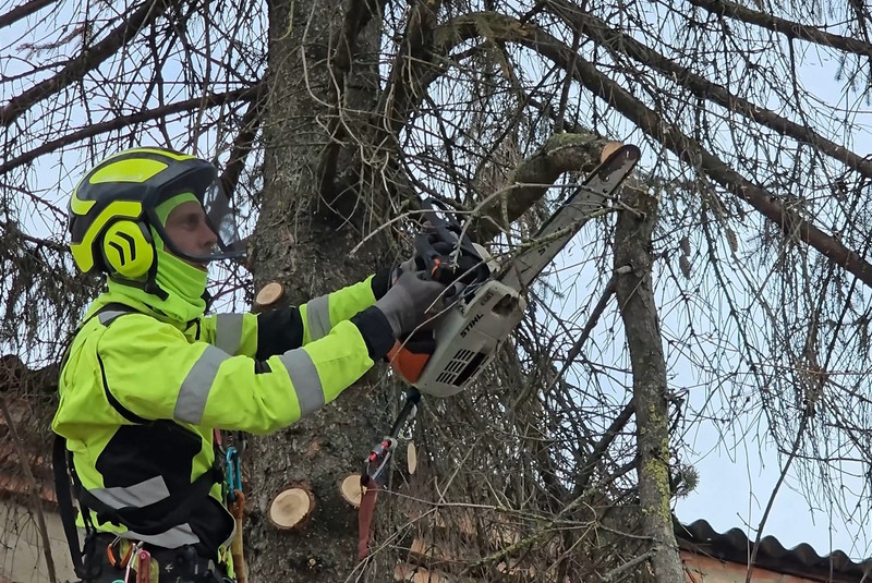В Лабинском районе старые деревья могут упасть во время сильных дождей и ветра. Также густая крона часто мешает нормальному росту плодовых растений. В работе использую профессиональную технику STIHL и Husqvarna, а для сложных условий — промышленное альпинистское оборудование. Обеспечиваю безопасность вашего участка.